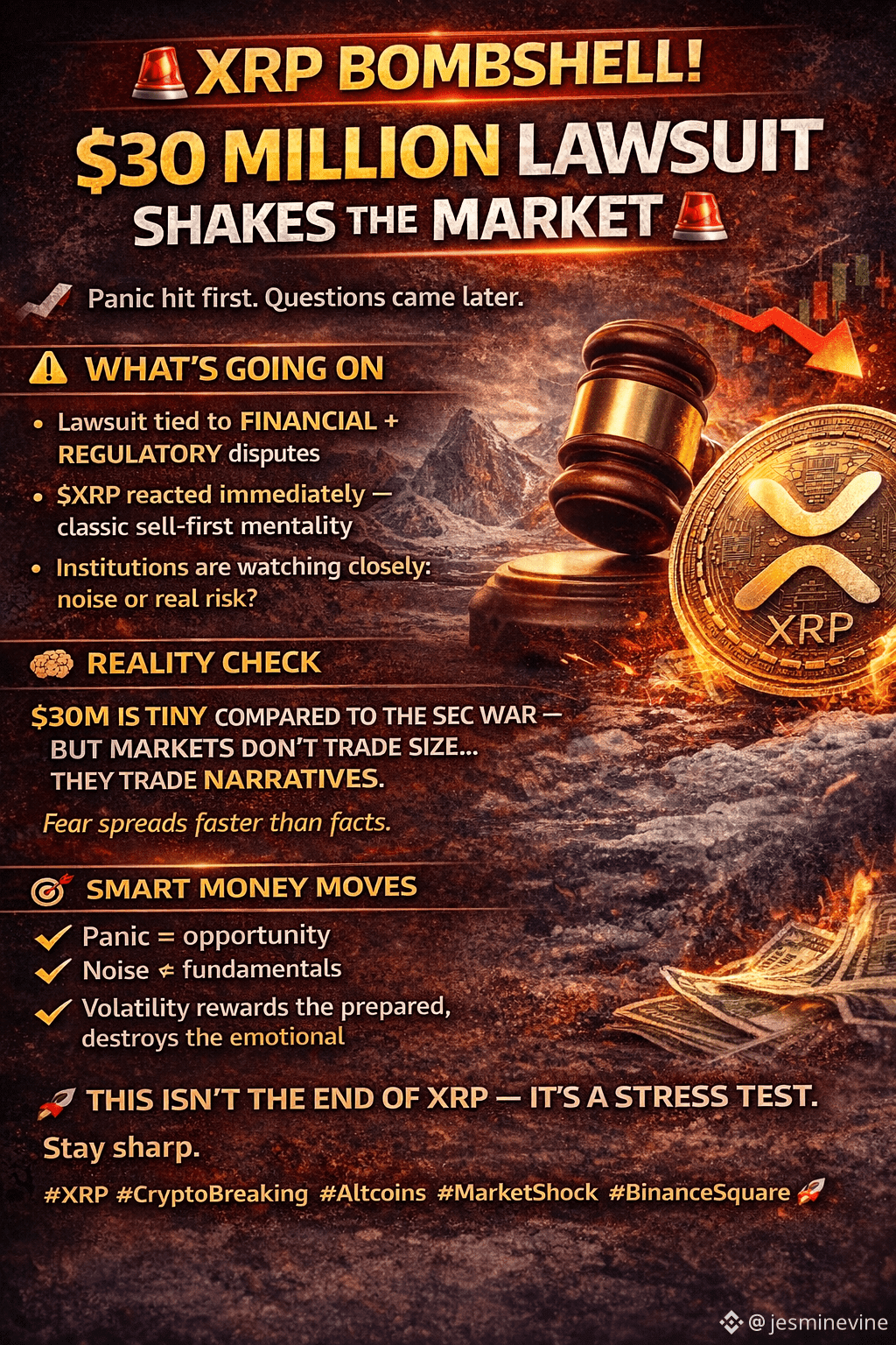Reports are spreading fast that a key figure linked to XRP is facing a $30M lawsuit ā and traders didnāt wait for confirmation.