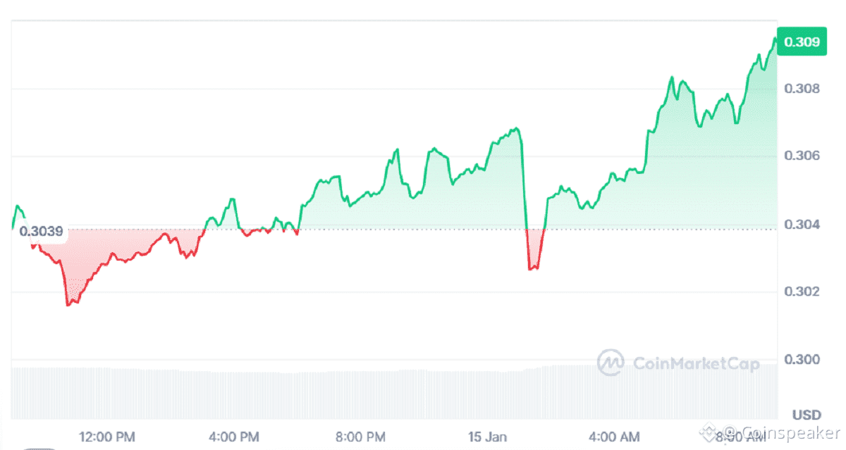 TRON’s TRX token saw a more than 1.5% jump in price on Jan. 15 as early trading hours concluded in the US. As of the time of this article’s publication, TRX is trading at $0.3093, having relented slightly from its 24-hour peak.