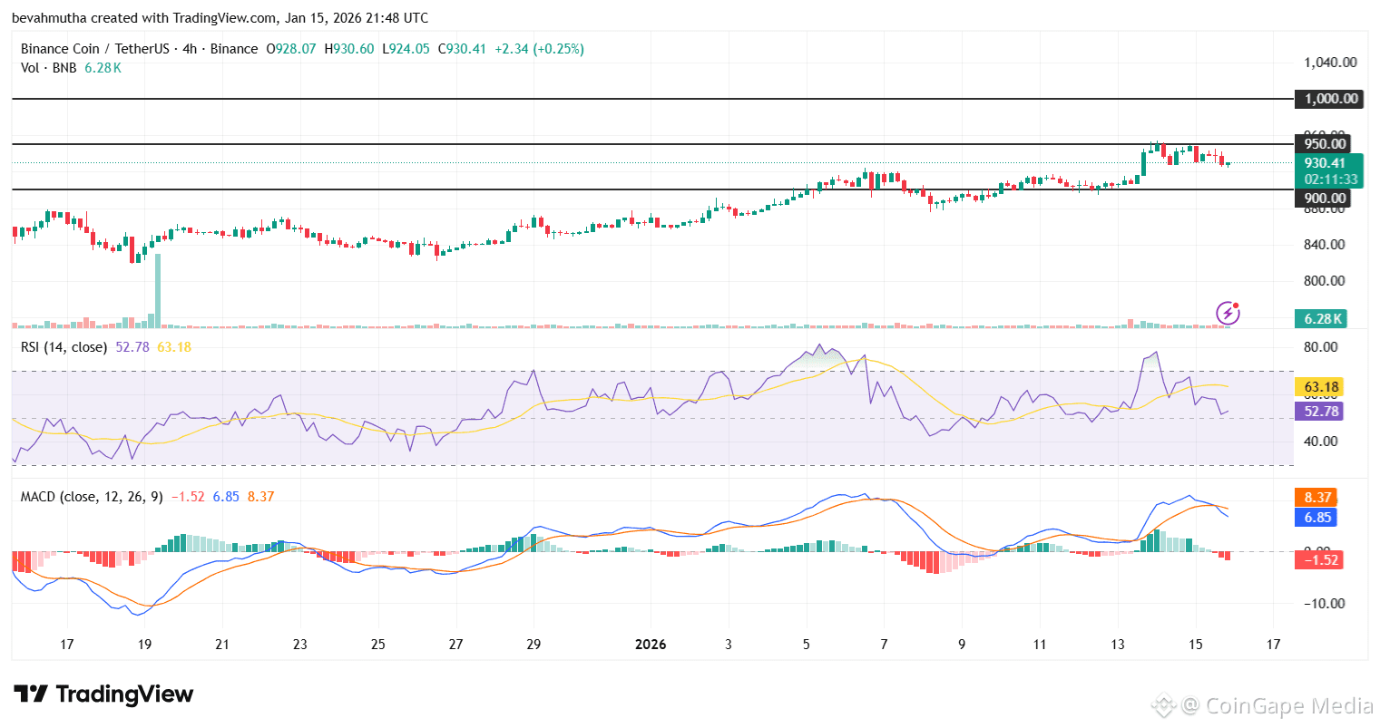 The latest BNB price traded at $939 as of January 15, 2026, reflecting a 0.21% increase in the 4-hour chart. Over the past few days, Binance Coin (BNB) has seen some volatility, breaking above key resistance levels around $900 and testing the $950 mark.