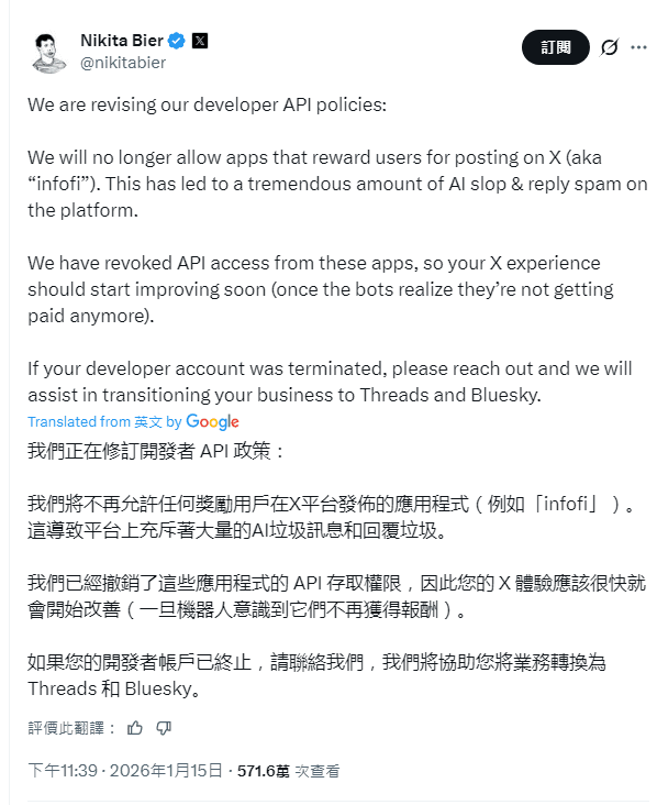 Portanto, o X cortou decisivamente as APIs desses projetos, mesmo que isso signifique abrir mão de milhões de dólares em receita estável por ano, nunca cedendo. À primeira vista, é uma otimização da experiência do usuário, mas a lógica mais profunda é na verdade uma luta pelo direito de definir o preço da atenção e a liderança do sistema de incentivos. Musk não se opõe a que os usuários lucrem no X, o núcleo é fazer com que todos os criadores sigam as regras da plataforma - apenas produzindo conteúdos de qualidade que podem gerar ressonância real entre os usuários, é que se pode obter benefícios, essa é a direção central da evolução do plano de incentivos para criadores oficiais do X em 2026.