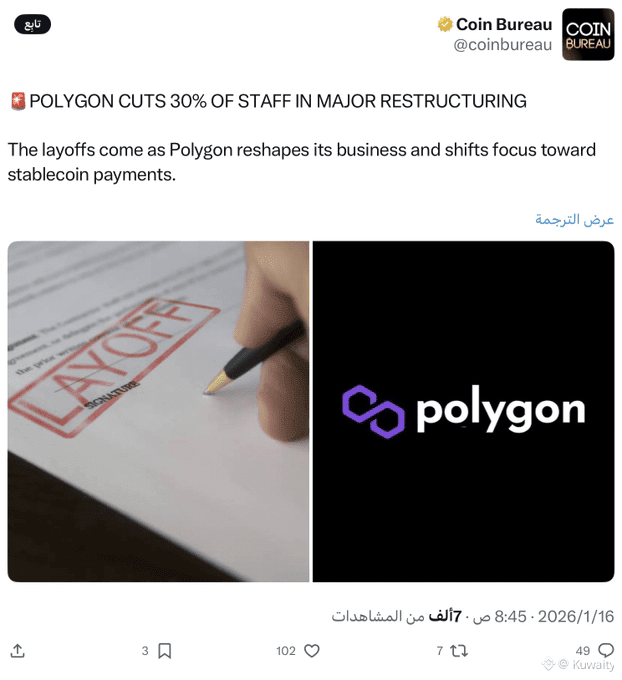 تأتي إعادة الهيكلة في ظل تصاعد المنافسة بين حلول توسيع البلوكشين وتزايد الطلب على التطبيقات العملية. وقد أجبرت ظروف السوق شركات Web3 على إعادة تقييم الإنفاق والهياكل التشغيلية. وترى بوليغون الآن أن الفرق الأصغر والأكثر تركيزاً قادرة على التحرك بسرعة أكبر وتقديم قيمة أعلى. ومن خلال تضييق نطاق العمل، تهدف الشبكة إلى توجيه الجهود نحو منتجات تُظهر بالفعل مؤشرات قوية على التبني، لا سيما في المدفوعات والبنية التحتية المالية.