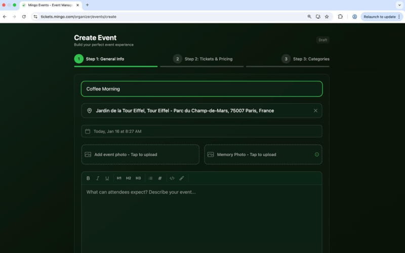 Para se envolver, os usuários podem entrar em contato pelo e-mail events@mingo.com