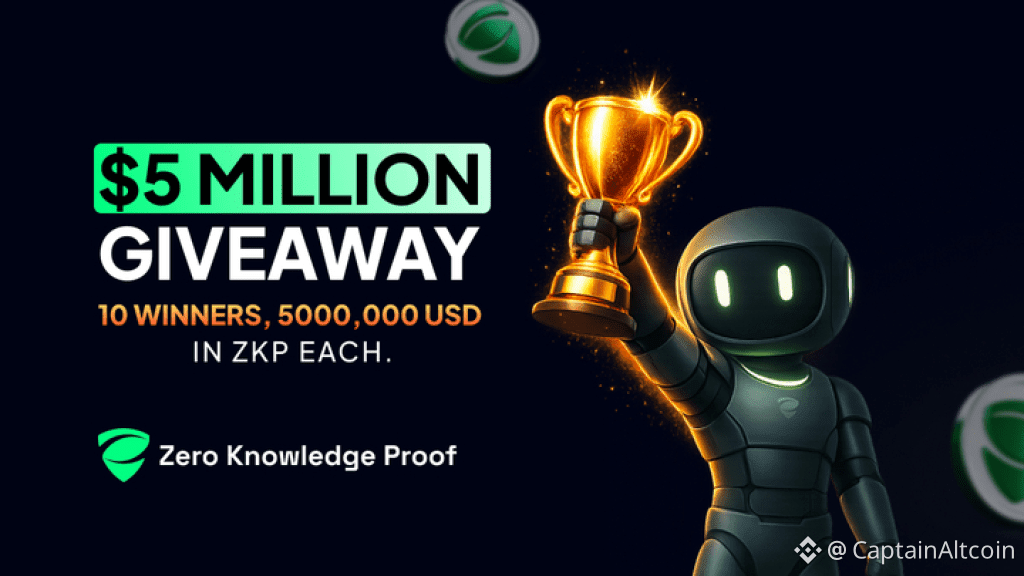 Alongside the presale auction, Zero Knowledge Proof (ZKP) runs a $5 million giveaway to reward early contributors. Ten winners will receive $500,000 in ZKP each. Eligibility requires holding $100 worth of tokens, completing engagement steps, and referring new participants.