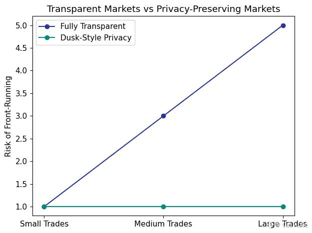 Consider a fund purchasing a high quantity of an asset. With a fully transparent blockchain, this will be visible to other traders and they can trade against it. The prices fluctuate unjustly and the fund in question is paying more just because its work was seen. In Dusk, it is possible to verify the transaction without making the market a live surveillance system.