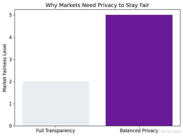 Full transparency actually leads to lower market fairness, while balanced privacy leads to healthier markets.
