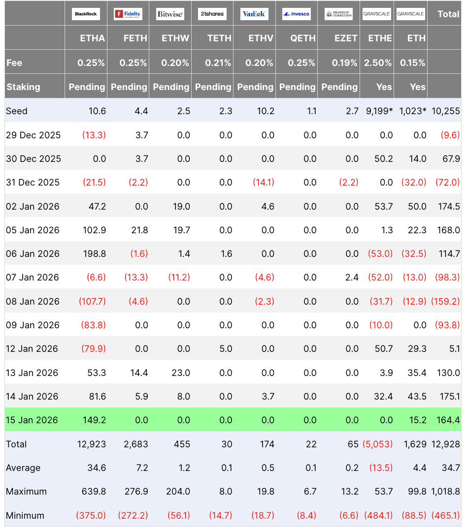 Os $175.1 milhões registrados na quarta-feira foram os mais altos desde 9 de dezembro de 2025 e marcaram as maiores entradas em um único dia de 2026.