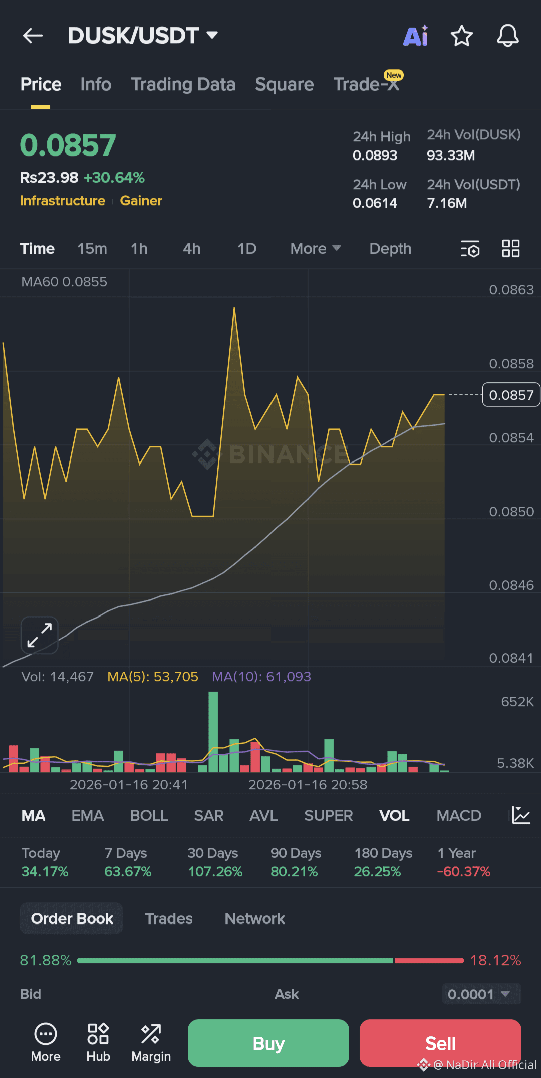 $DUSK $USDT just pumped to $0.08475, up a massive +30.12% in 24h! 🚀