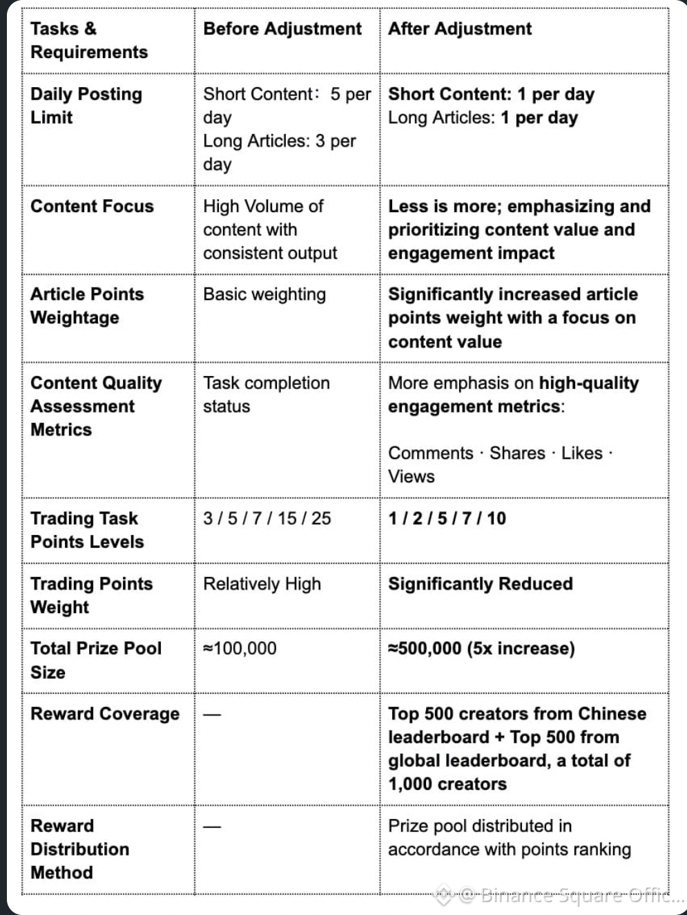 O Creatorpad da Binance Square foi reformulado e está ao vivo hoje—com um enorme prêmio 5x maior do que antes, compartilhado entre os 500 melhores criadores. O sistema de pontos reformulado do Creatorpad coloca ainda mais foco na qualidade do seu conteúdo e no engajamento orgânico.