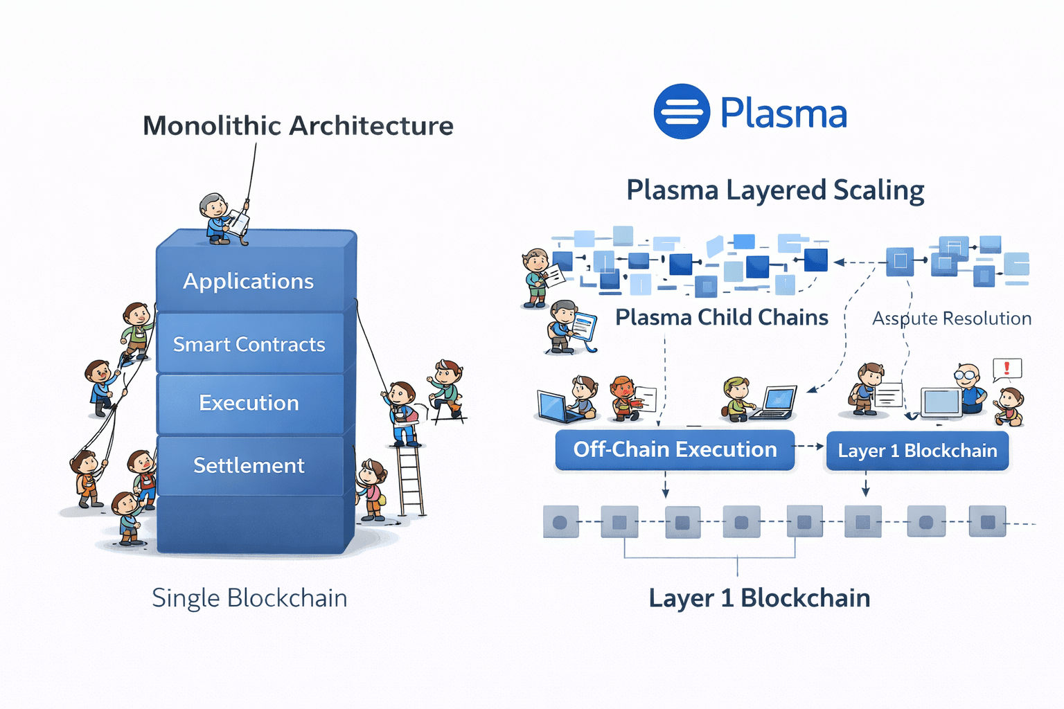 Em sua essência, o Plasma reestrutura como as transações são processadas. Em vez de forçar cada ação a ser executada e armazenada na cadeia principal, o Plasma permite que a computação aconteça em ambientes separados, enquanto ainda permanece ancorada em uma camada base segura. Isso reduz a carga na rede principal sem remover seu papel como a fonte final da verdade. A liquidação e a segurança permanecem intactas, enquanto a execução se torna flexível.