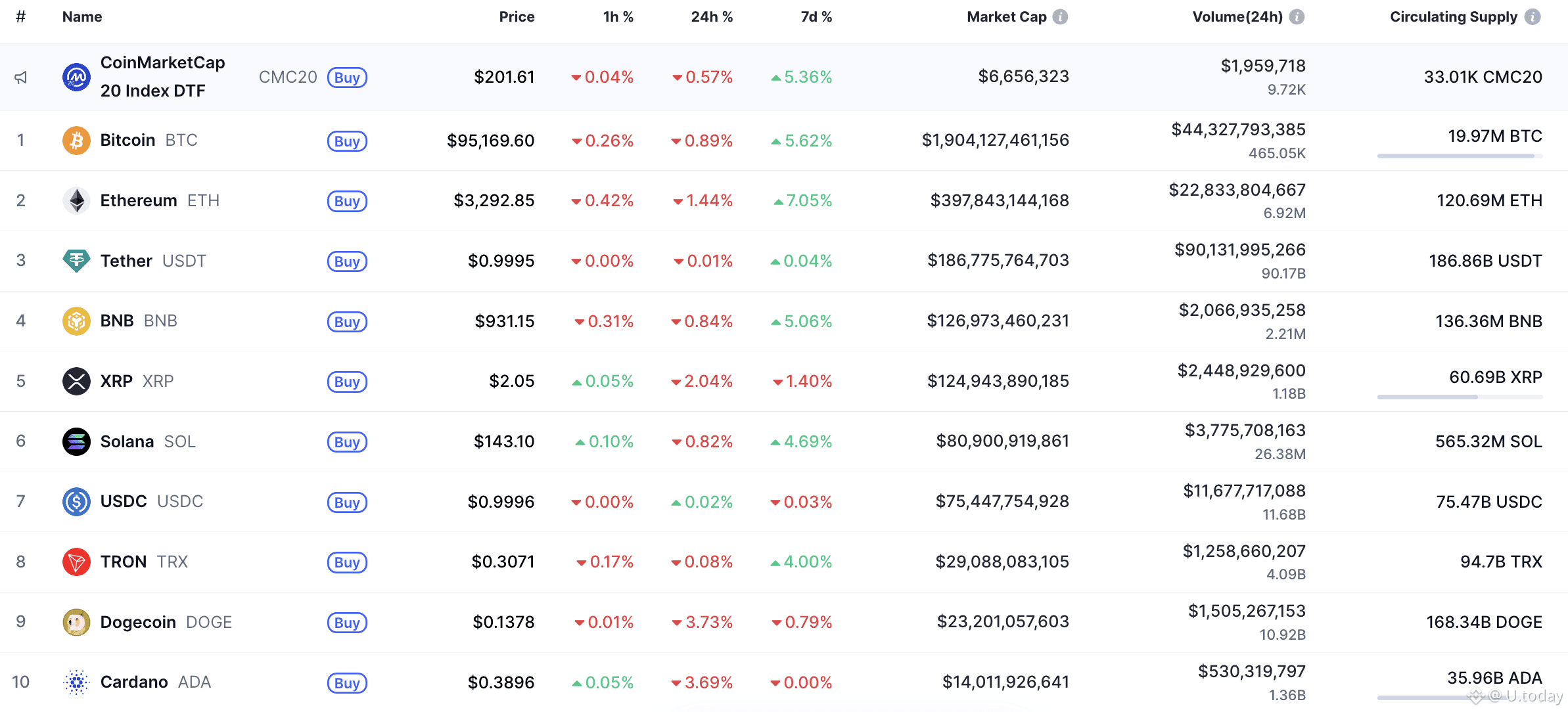 Bears are back in the game at the end of the week, according to CoinMarketCap.