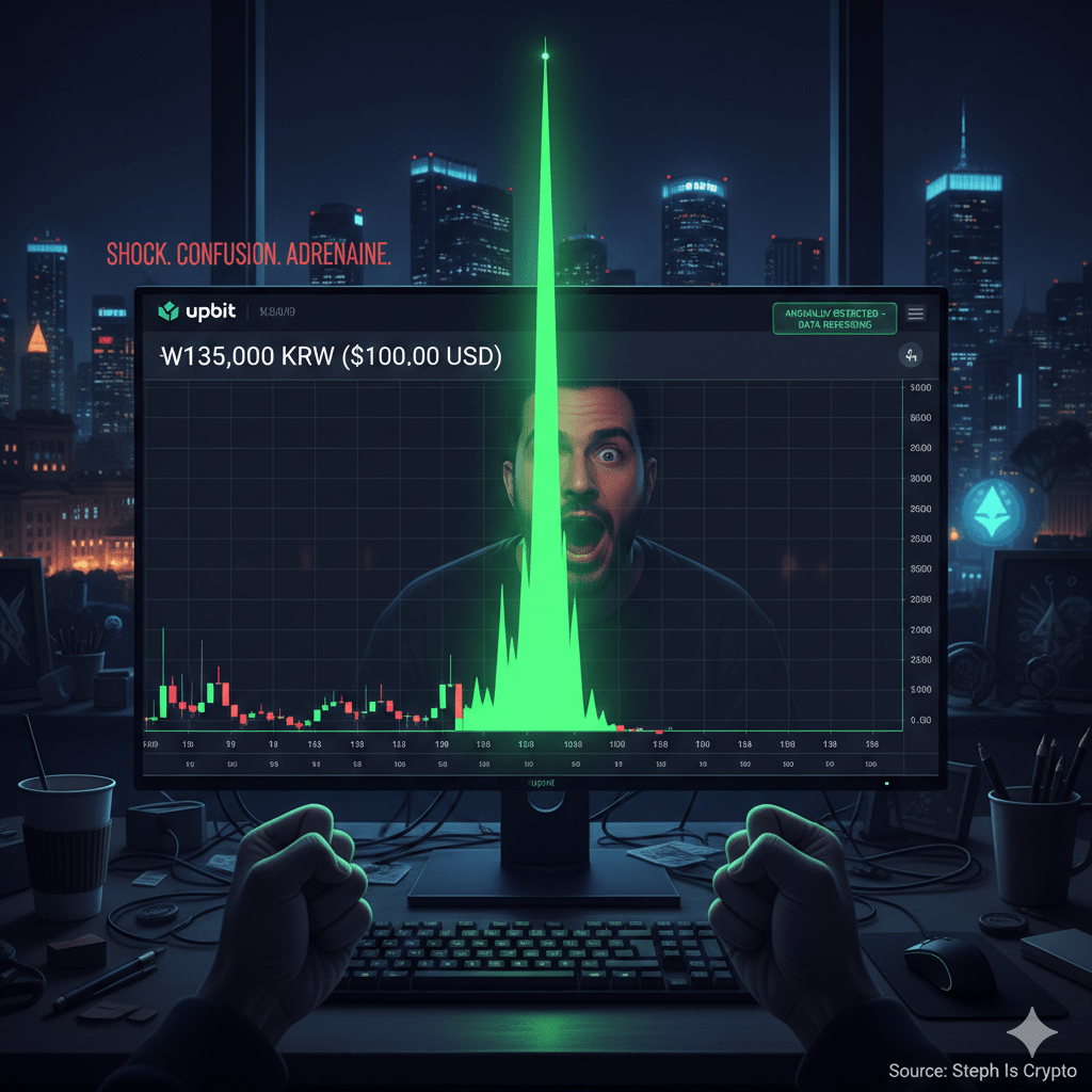 A verdade se tornou mais clara: isso foi provavelmente um erro de liquidez ou anomalia técnica ⚠️ — isolada ao Upbit. Um livro de ordens fino. Uma ordem agressiva repentina. Um momento em que o sistema piscou 👁️