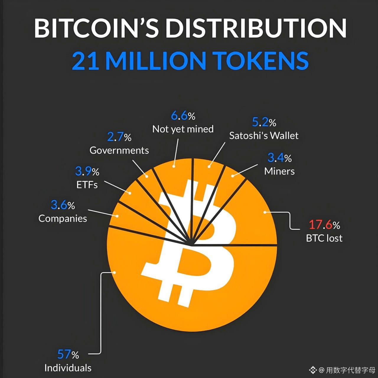 Bitcoin has a fixed supply of 21 million coins, and this image shows how they are distributed today. $BTC