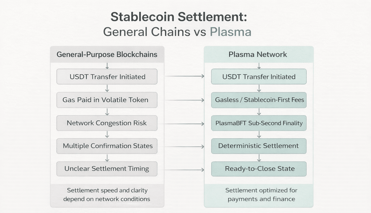 A maioria das blockchains foi construída com computação de propósito geral em mente. As stablecoins foram adicionadas mais tarde como ativos rodando sobre essa infraestrutura. Isso funciona bem para experimentação em DeFi, mas cria atrito em cenários reais de pagamento e liquidação.