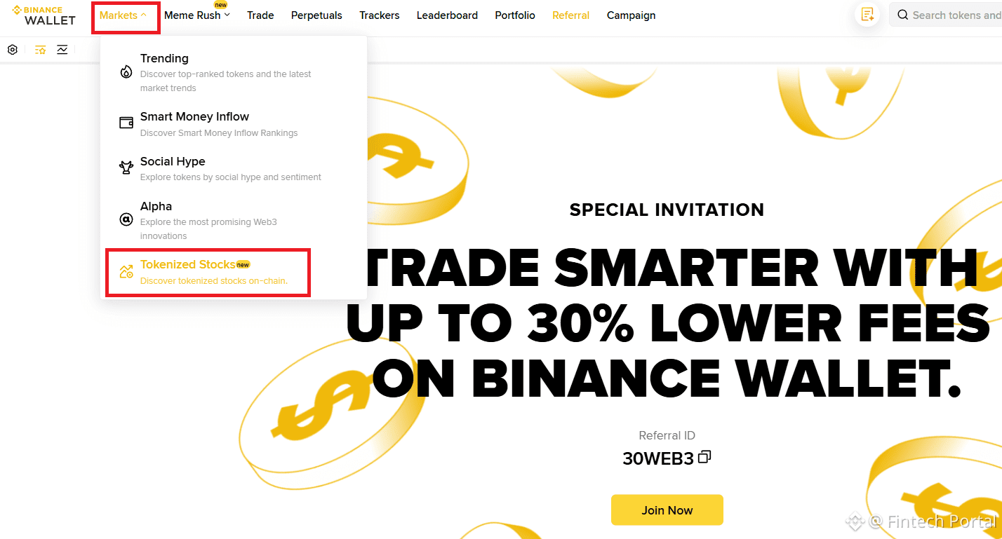 Tokenized Stocks tab on Binance Use the search engine to find the shares you are interested in