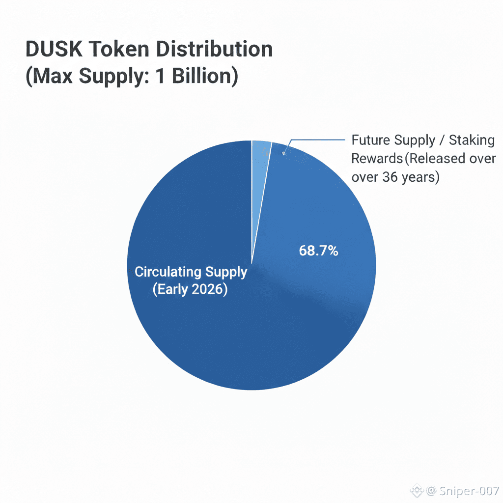 Finance isn’t only math and code, though—it’s people and incentives wearing professional clothes. That’s why DUSK isn’t just another coin; it’s the glue that keeps everyone aligned. The token setup is straightforward: 500 million to start, another 500 million released slowly over 36 years to reward people who stick around and stake, topping out at 1 billion. The gradual fade-out rewards early security without flooding the future. Even the staking minimum feels thoughtful—low enough for real people to join, high enough that it actually means something.
