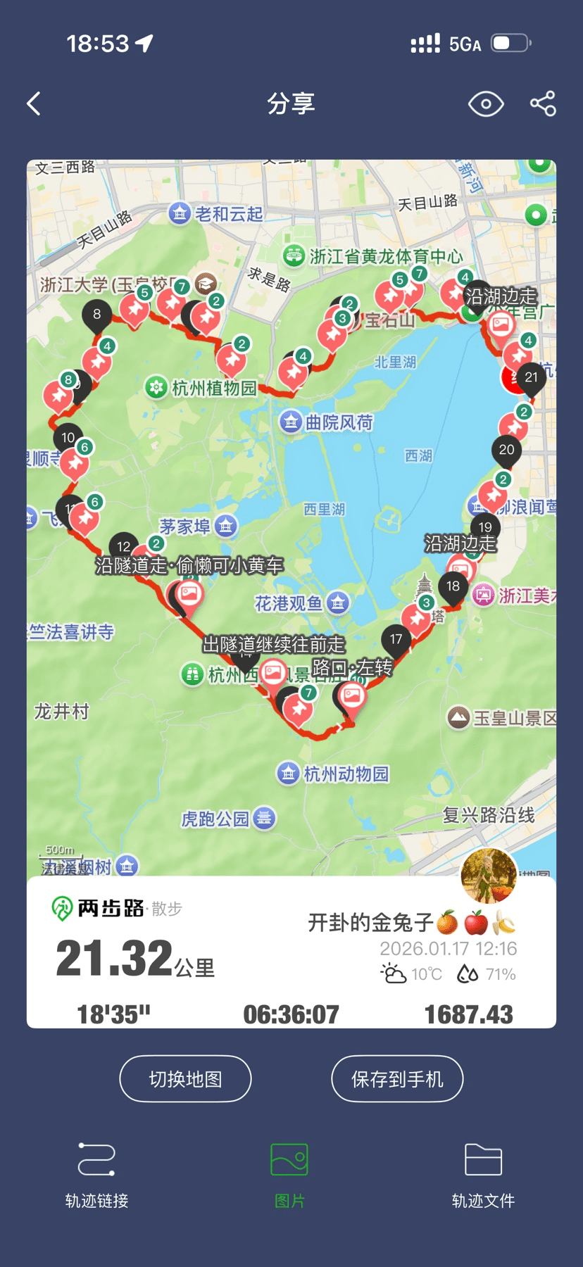 O coelhinho caminhou 23,64 km hoje, subiu 183 andares, desafiou o Lago Oeste em Hangzhou com sucesso, e caminhou o percurso todo.