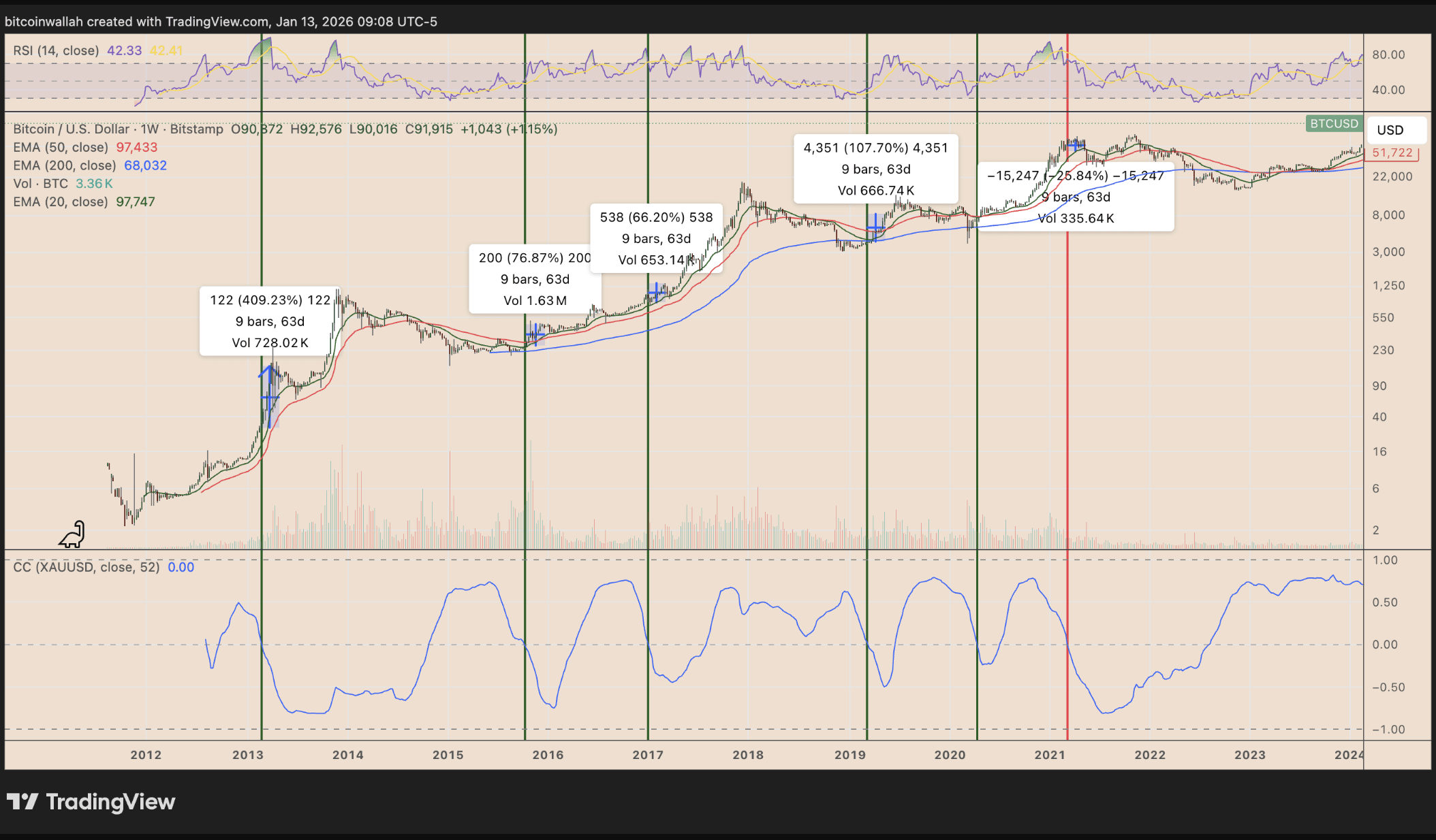 Gráfico semanal BTC/USD. Fonte: TradingView