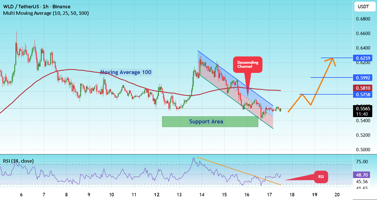 Há uma zona de suporte chave em verde a 0.5383. O preço já reboteu dessa zona várias vezes e é esperado que rebote novamente.