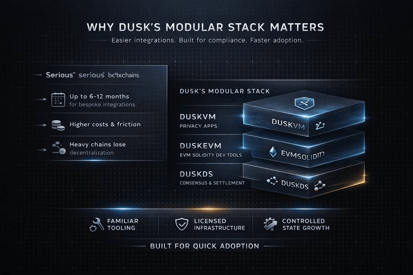 O ponto chave aqui é o porquê. O Dusk tem mantido que integrações personalizadas de Camada-1 podem exigir meses e são muito mais caras de implementar do que aplicações do tipo EVM, e que implementações EVM podem ocorrer em apenas alguns meses. Não é um ponto menor, pode regularmente se transformar em uma cadeia de verdadeiros construtores ou em um nicho. Idealmente, no mundo atual, a adoção geralmente falha em quanto tempo isso levará? não "essa tecnologia é impressionante?"