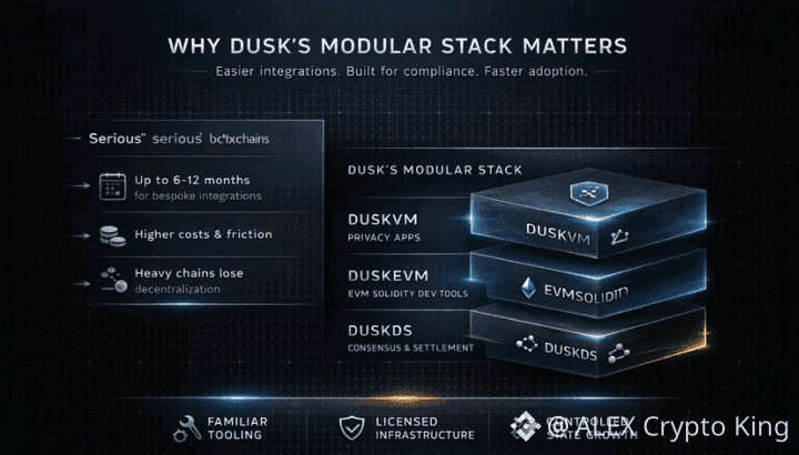 The modular stack of Dusk is not flashy marketing. It’s an engineering answer to a human problem: adoption fatigue.