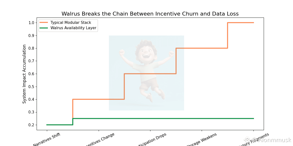 This approach aligns with security models that assume failure rather than perfection. Participants will leave. Governance will change. Incentives will be revised. Systems that rely on constant engagement eventually degrade. Walrus plans for entropy by making availability resilient to governance dynamics instead of dependent on them.