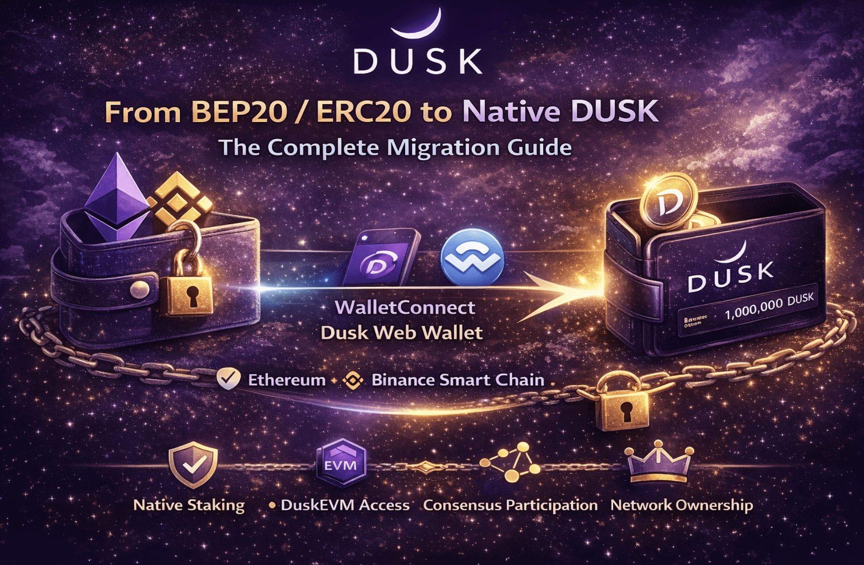 A migração de BEP20 / ERC20 → DUSK Nativo marca um grande marco para o ecossistema Dusk. Representa a transição de dependência para soberania, de wrappers para valor nativo ao protocolo.