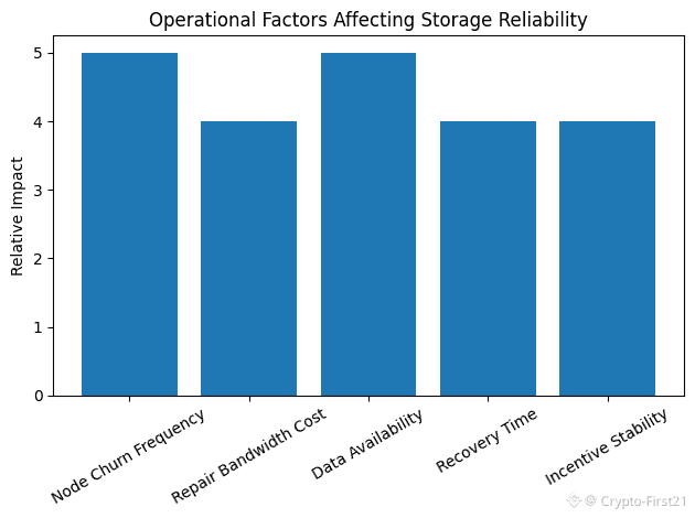 From a practical standpoint, traders and investors should start factoring storage reliability into their risk models. It’s not enough to ask whether a token is liquid. You should ask whether the data your strategy depends on will be available during stress. Metrics like recovery time, repair bandwidth, and uptime under churn are just as relevant as block times or fees. Storage failures don’t always announce themselves loudly. Sometimes they show up as subtle delays that compound into losses.