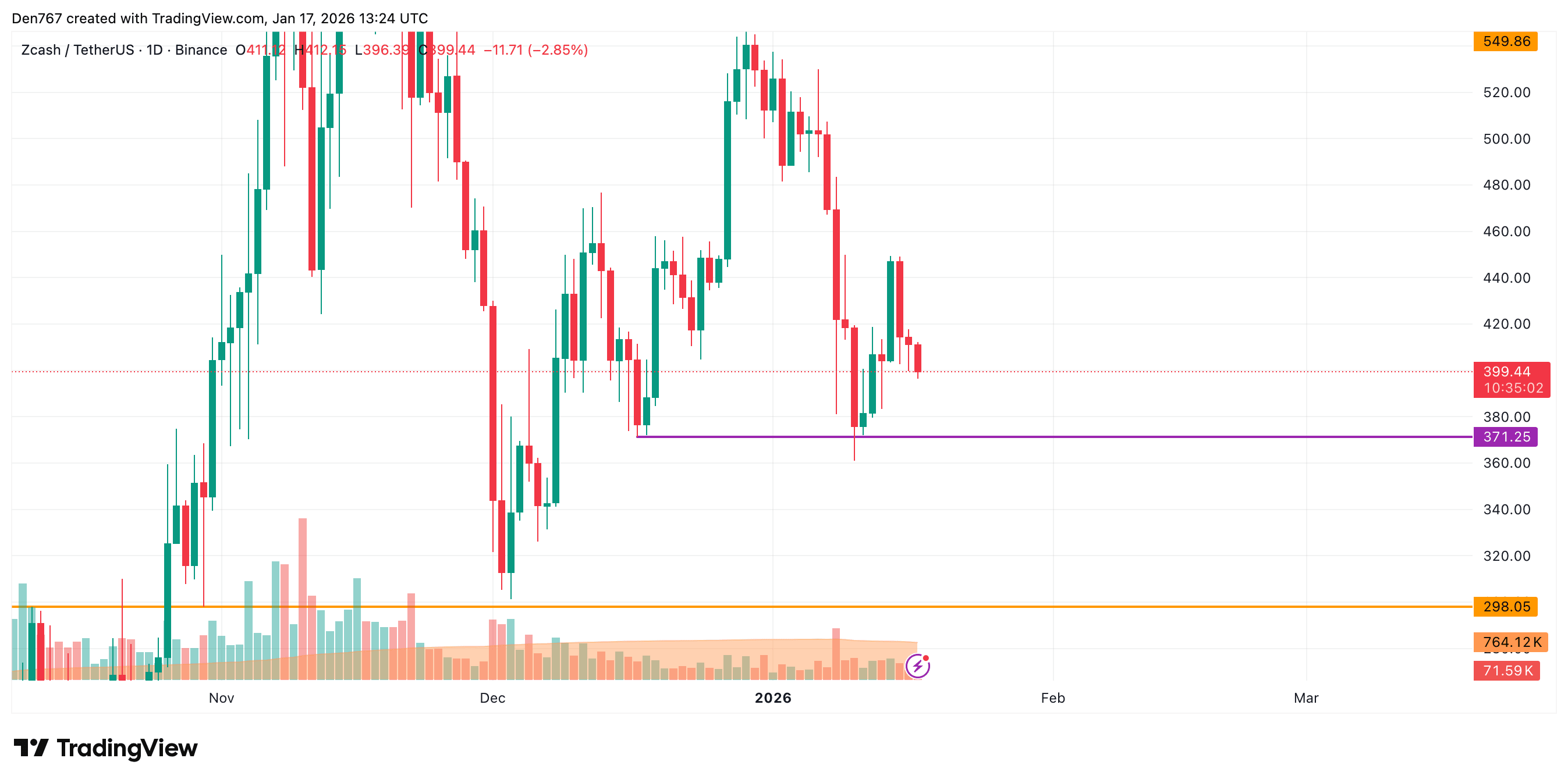 ZEC está sendo negociado a $399,52 no momento da publicação.