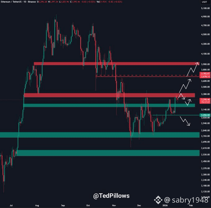 وفقًا لـ TedPillows على منصة إكس، فإن إيثريوم مستقر عند المستويات الحالية. وبمجرد أن يُغلق السعر اليومي فوق مستوى 3400 دولار، فقد يُطلق ذلك حركة صعودية، حيث سيكون الهدف التالي هو منطقة 3800 إلى 4000 دولار.