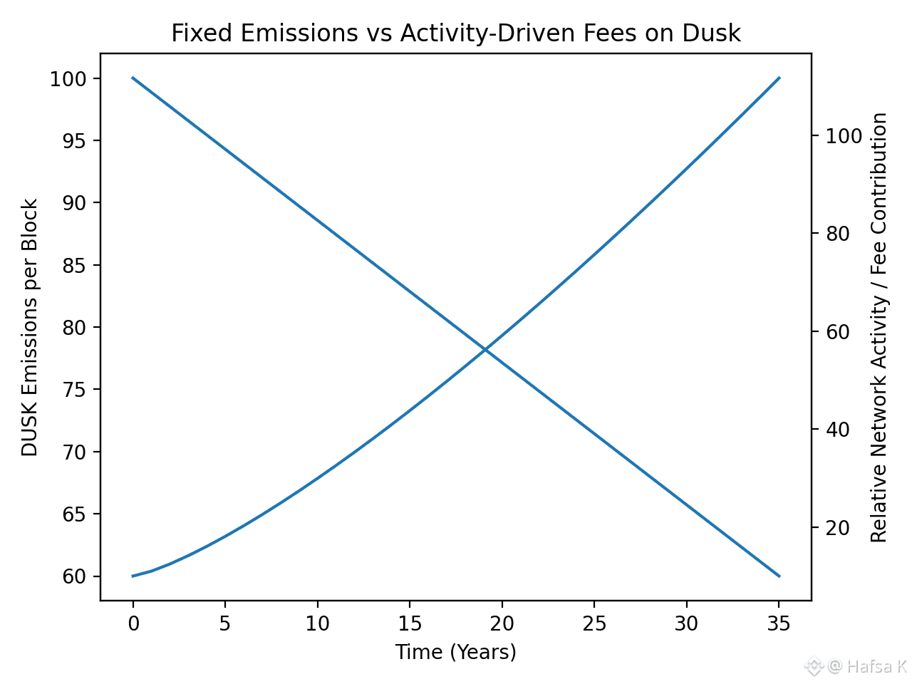 Dusk emits DUSK on a 36-year schedule. That number always makes people pause. But it lines up with the kind of assets the network is built for. Bonds don’t care about quarterly narratives. Funds don’t reprice every season. Institutions want predictability more than excitement.