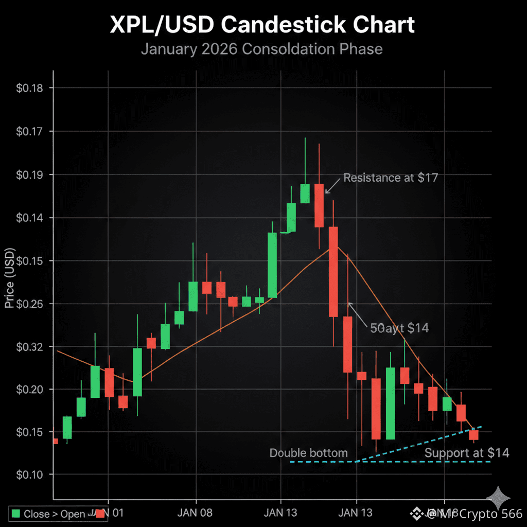 XPL entered 2026 in a corrective phase following its late 2025 highs. After hitting a local bottom of \$0.1158 in mid-December, the price stabilized in early January around \$0.14.