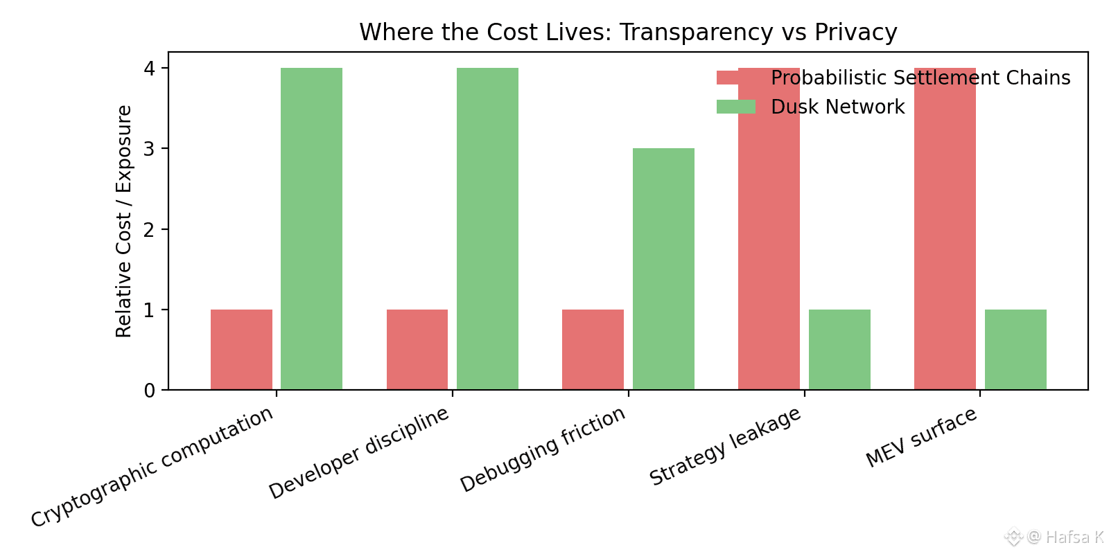 This invisibility isn’t free. Proof generation costs real computation. Users and developers feel it first. A Phoenix transaction isn’t just a signature; it’s cryptography. Devices do more work. Contracts require careful circuit design. Developers coming from copy-paste Solidity environments hit a wall quickly. On Dusk, you aren’t just writing logic. You’re defining what the world is allowed to know.