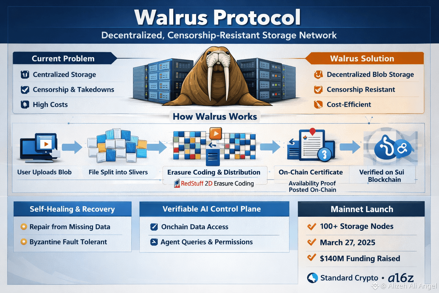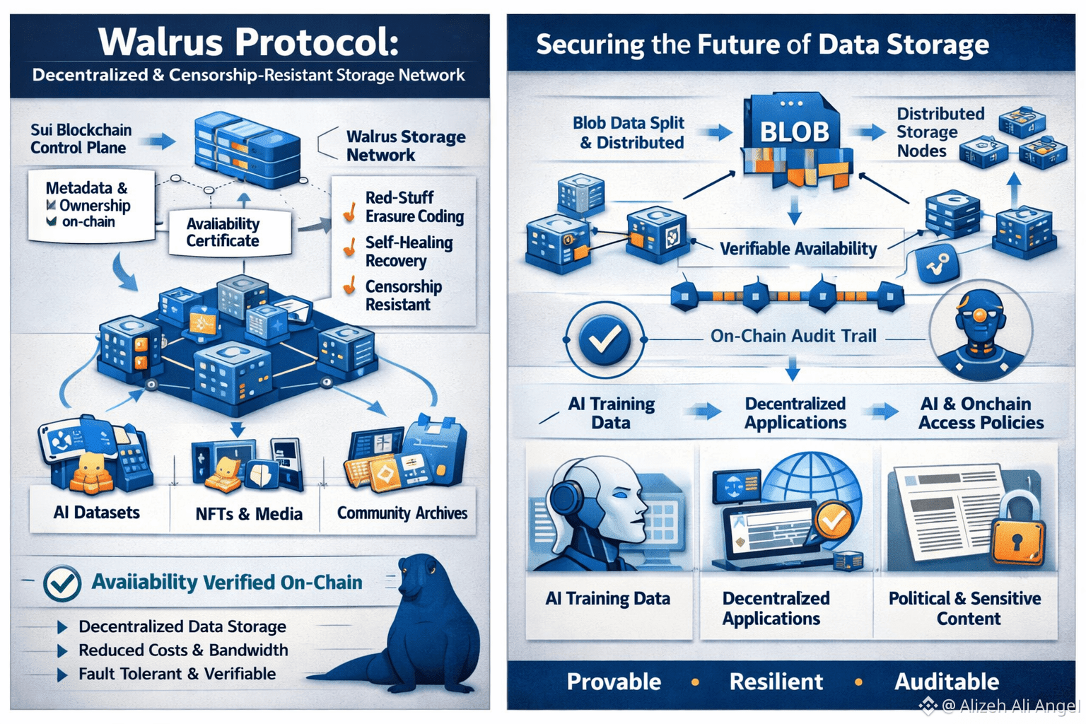 @Walrus 🦭/acc If you build anything on a blockchain long enough, you run into an awkward truth: the “decentralized” part often stops at the edge of the chain. Smart contracts may be public, but photos, videos, datasets, game assets, and even the front-end site often sit on a cloud server that can be deplatformed, geo-blocked, or quietly repriced. Walrus Protocol is trending now because it targets that weak link with decentralized blob storage that’s meant to stay available even when some participants act maliciously, and because the files we rely on keep getting larger and more politically sensitive. It’s not just about NFTs anymore; it’s AI training data, community archives, and media that people do not want a single gatekeeper to control. Walrus positions itself as a robust but affordable way to store unstructured content even in a setting where some nodes can lie or fail.