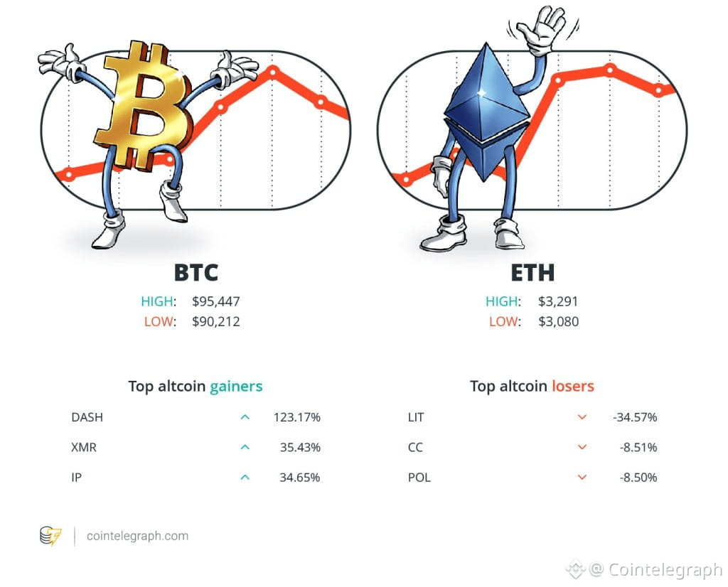 At the end of the week, Bitcoin (BTC) is at $95,447, Ether (ETH) at $3,291 and XRP at $2.06. The total market cap is at $3.23 trillion, according to CoinMarketCap.