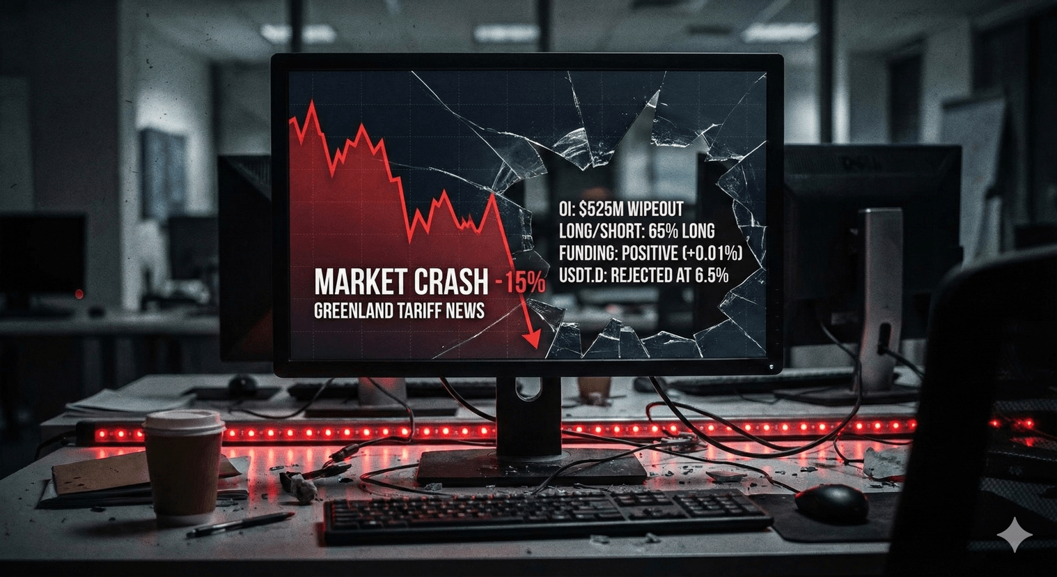 Enquanto o Twitter Crypto inicialmente se apressou em culpar as interrupções das exchanges ou uma baleia específica, o gatilho foi puramente geopolítico. Um anúncio surpresa de Donald Trump sobre tarifas significativas sobre nações europeias—ligado a uma tentativa parada de compra da Groenlândia—enviou os futuros das finanças tradicionais em um colapso. Com os mercados de ações fechados para o Dia de MLK, o cripto absorveu toda a força do pânico.