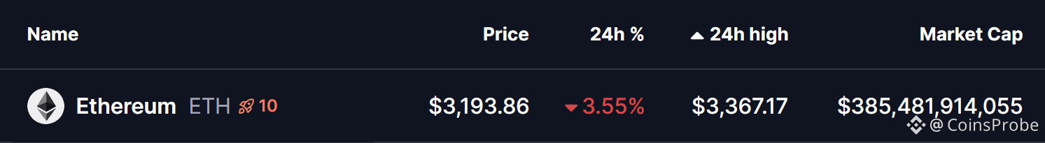 During today’s pullback, $ETH once again faced rejection at the triangle’s neckline resistance before sliding lower. Price is now hovering near $3,190–$3,200, gradually drifting toward the ascending trendline support that has repeatedly acted as a demand zone over the past several months.