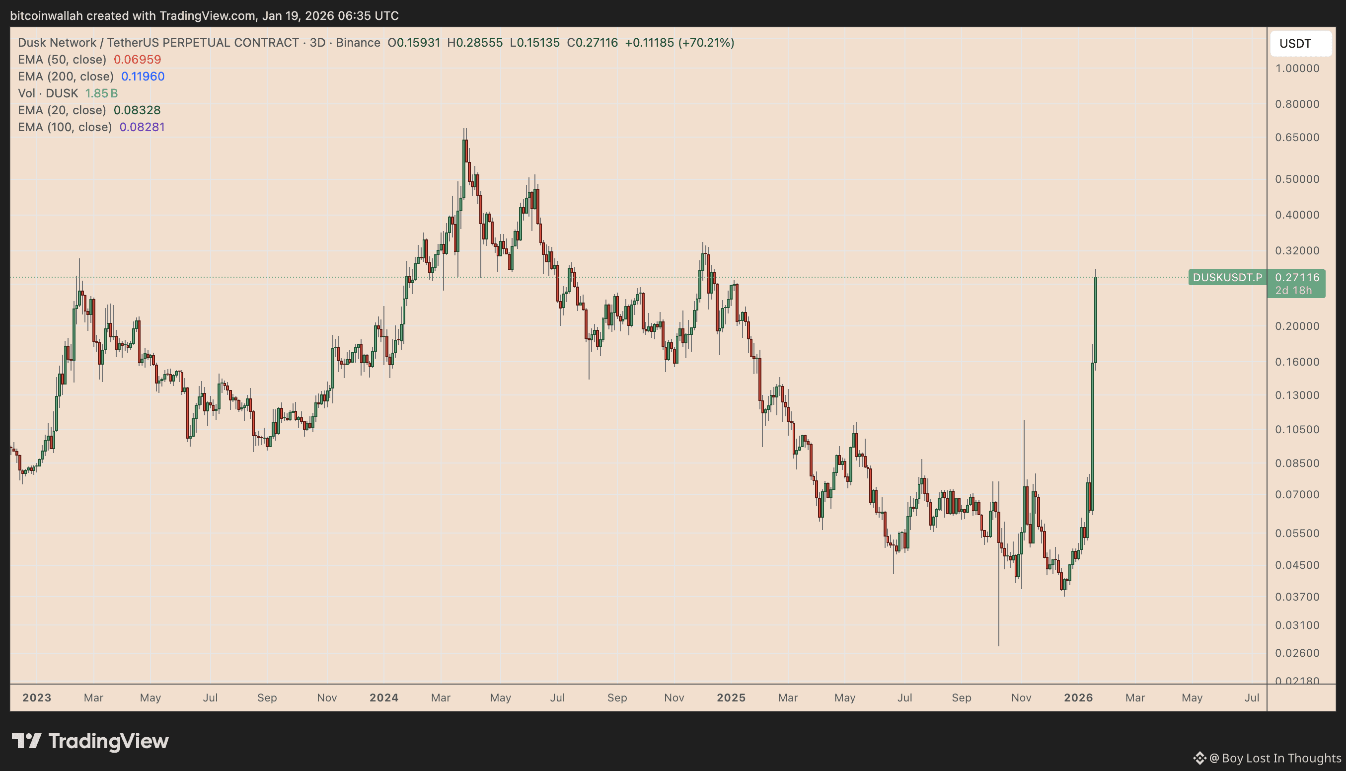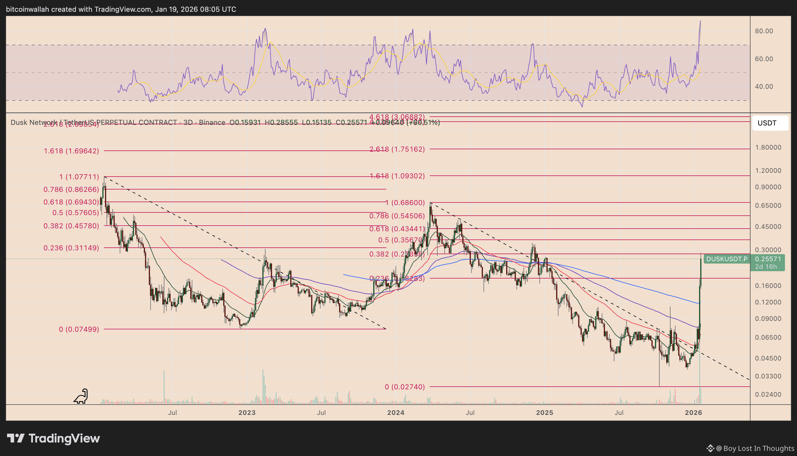 Meteoric Rise: DUSK has surged approximately 545% year-to-date, reaching $0.2855, partly fueled by a sector-wide shift toward privacy coins following Zcash's governance problems.
