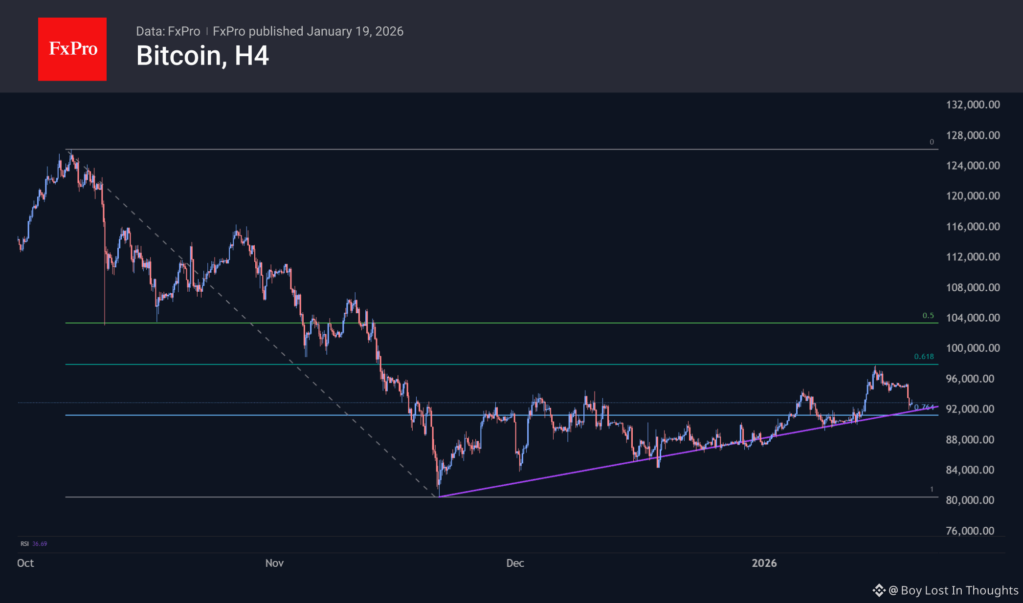 The move is seen as a bear-driven liquidity grab, but Bitcoin stayed inside its October–November recovery range and above the November–December trendline.