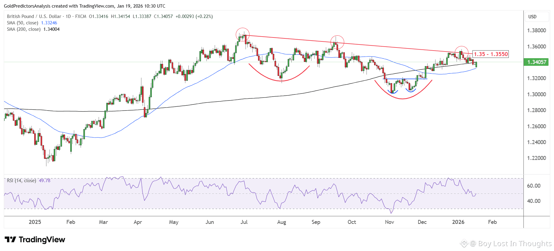 GBP/USD: Pressured by direct UK inclusion in tariff threats; key resistance lies at 1.35–1.3550, with support at 1.3180.