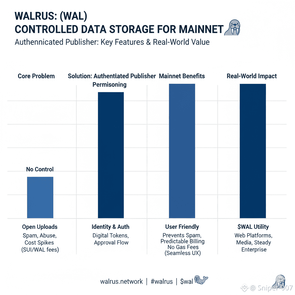@Walrus 🦭/acc ($WAL ) is really starting to stand out in the Web3 space because it tackles one of the biggest hurdles right now: safe, controlled data storage. As more real-world apps jump into decentralized tech, letting just anyone upload freely isn't always the best or safest idea. On Walrus Mainnet, every piece of data you store actually costs real SUI and WAL tokens, so open access can lead to spam, abuse, and surprise expenses fast. That's exactly why the Authenticated Publisher feature is such a game-changer.