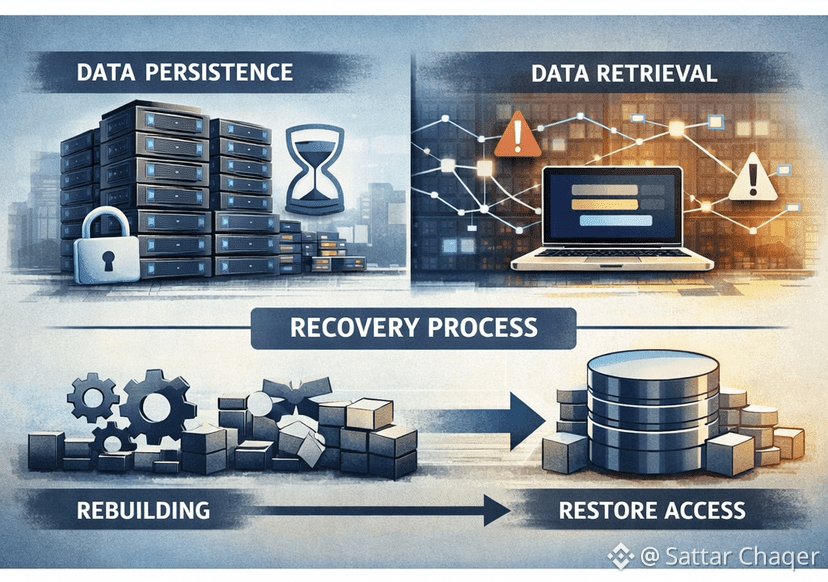 Existence is about the data just being there replicated, safe, still sitting quietly even when nobody’s looking. Use is about retrieval: someone wants it now, under whatever conditions happen to be real at that moment. As networks get older, use gets harder timing off, nodes missing, coordination spotty. Walrus keeps persistence independent so it doesn’t fall apart when use is delayed or messy.