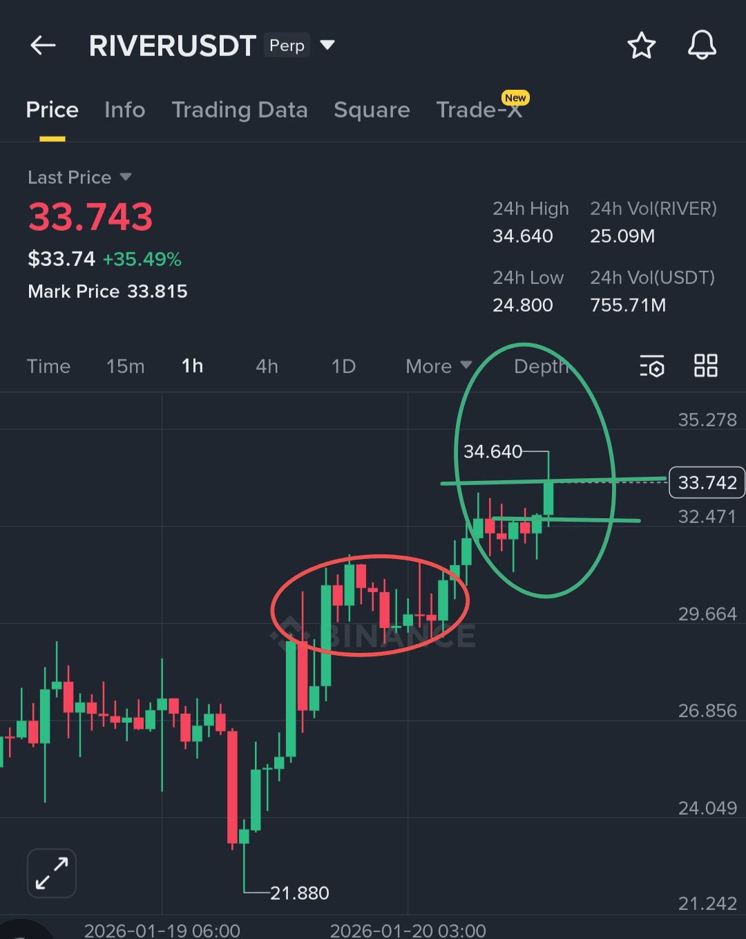 Como o River é um token de baixa liquidez, controlado por baleias, este cenário poderia empurrar o preço para a zona de $35–38 em pouco tempo.