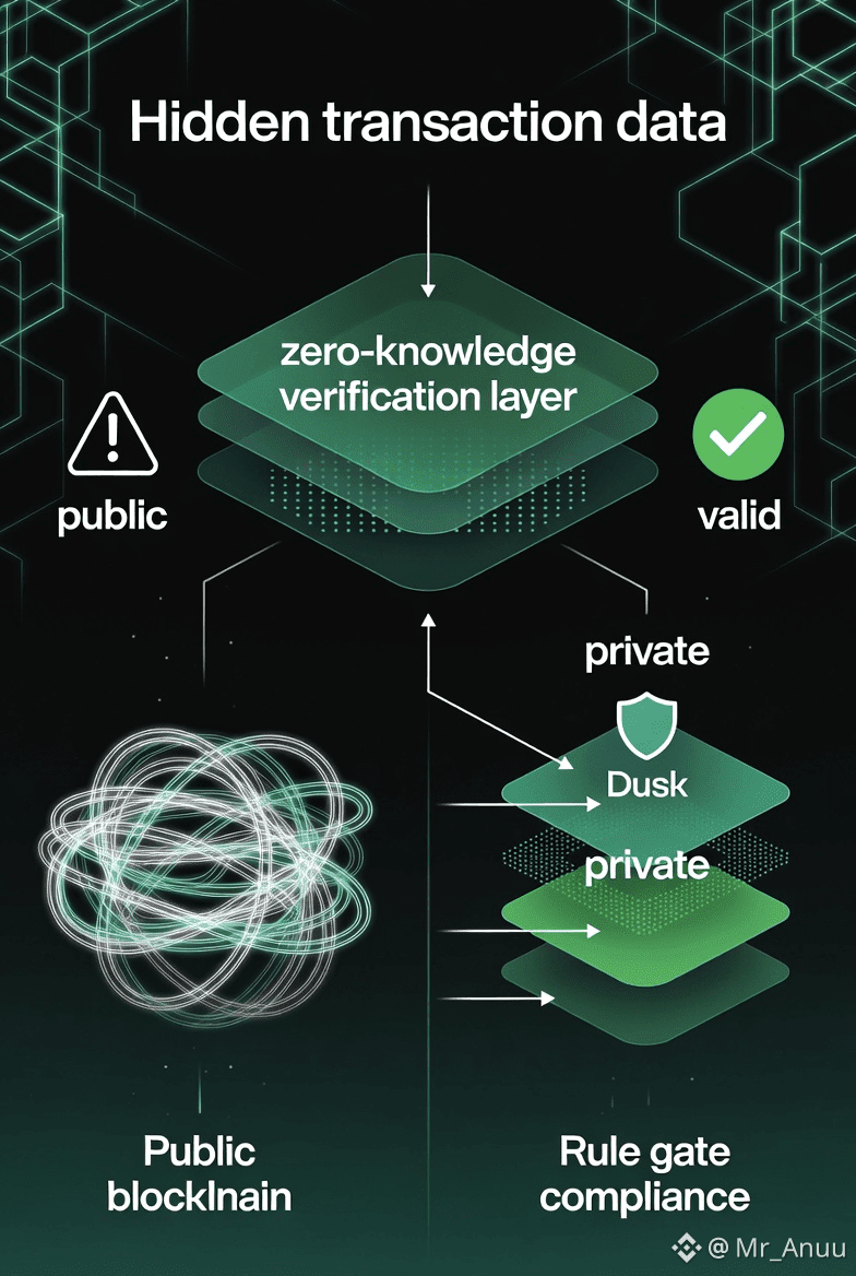 Dusk does not treat privacy as concealment. Instead, it separates confidentiality from correctness. Transactions remain private, yet their validity can be cryptographically proven. This allows financial actors to protect sensitive data without sacrificing legal legitimacy.