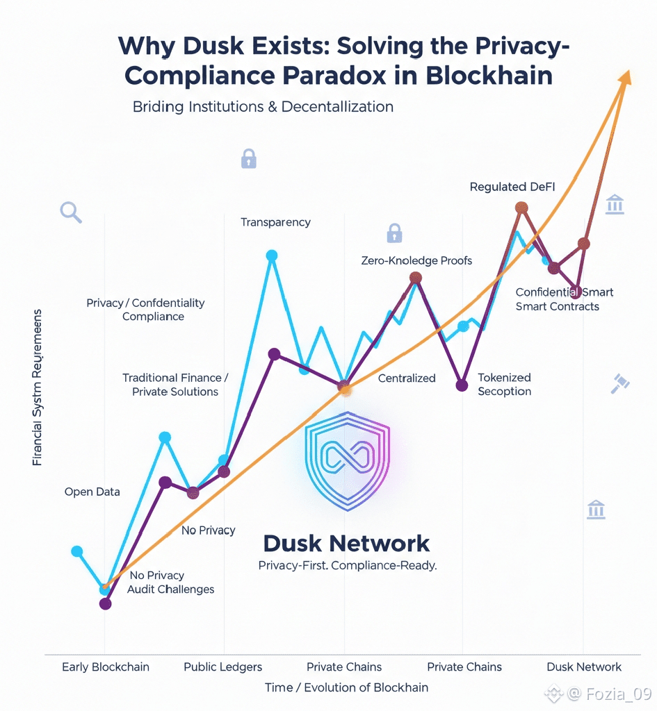Blockchain started out with a simple promise: open,transparent systems where anyone can verify what’s happening.That sounds great, and it works until you try to apply it to real world finance.Banks and regulators don’t just want transparency;they need privacy,data protection,legal oversight.Most blockchains can’t deliver all of that.Dusk Network steps in to fix this clash between blockchain’s openness and what finance actually needs to operate.