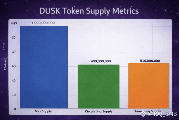 Infrastructure requires economic stability, not constant uncertainty. Dusk’s token supply structure reflects this requirement by clearly separating maximum supply, circulating supply, and remaining supply. This clarity supports staking security, governance participation, and long-term network sustainability without relying on excessive inflation or opaque emissions. For regulated participants, understanding supply dynamics is essential — not for speculation, but for risk management and long-term planning.