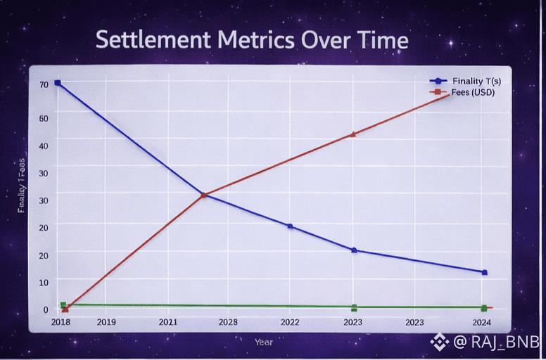 The evolution of Dusk’s settlement metrics shows a deliberate architectural choice. Over time, finality becomes faster and more predictable, while auditability increases instead of being sacrificed. In traditional public chains, faster settlement often means less oversight or more complexity added off-chain. Dusk integrates auditability directly into the settlement layer, allowing transactions to finalize efficiently while remaining verifiable when required. This makes settlement suitable not just for crypto-native activity, but for real financial workflows where every transaction may later need to be reviewed, justified, or audited.