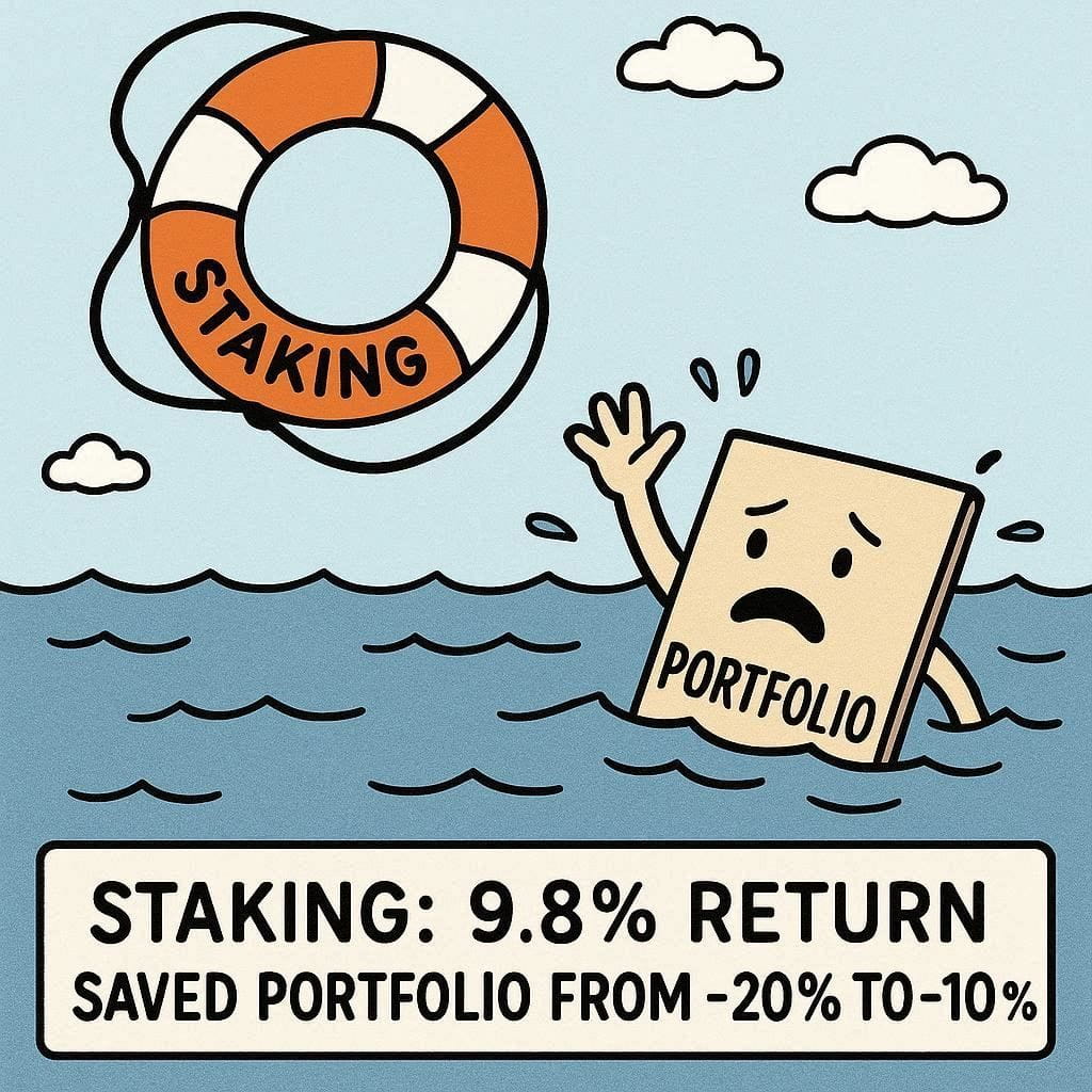· Recompensas de staking: +9,8% (salvando o portfólio)