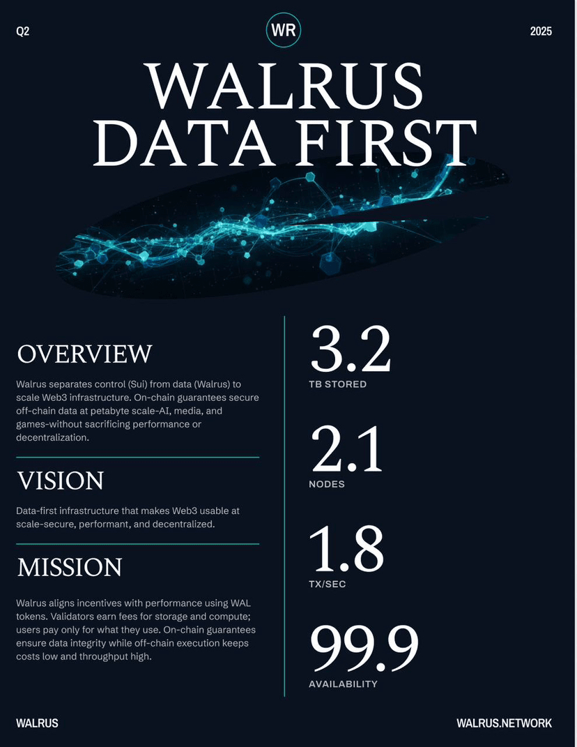 Walrus divide responsabilidades, em vez de carregar mais dados na cadeia. A blockchain Sui serve como uma camada de controle, faz a coordenação, contabilidade e verificação. Walrus se comunica com o plano de dados: armazena, serve e mantém grandes blobs de maneira eficiente. Esta divisão não existe em um nível cosmético. Isso faz com que a blockchain não fique sobrecarregada com os papéis que não foi projetada para desempenhar, e ainda assim fornece às aplicações as garantias criptográficas em relação à disponibilidade dos dados.