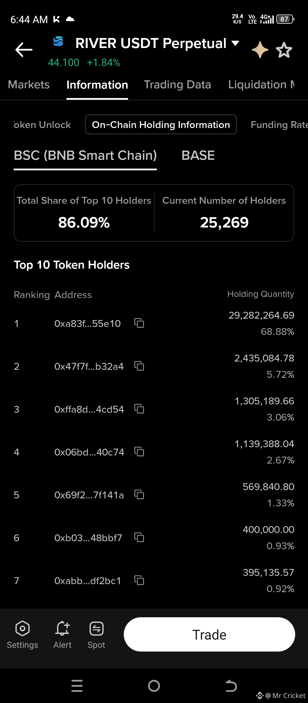 On BNB chain itself the holding pattern is abnormal. The small positive sign being 25000+ wallets holding the coin