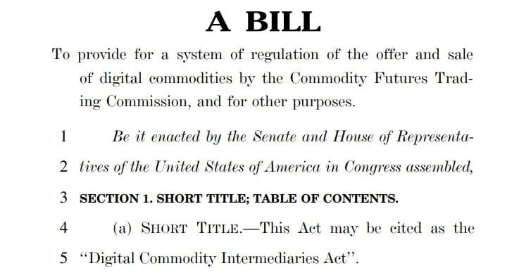 O projeto de lei visa criar uma estrutura para como os mercados de criptomoedas serão regulamentados pela Comissão de Valores Mobiliários e pela Comissão de Negociação de Futuros de Commodities.